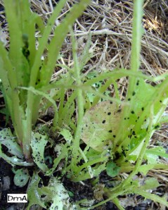 Loopers are green caterpillars with several white stripes down their backs. When they crawl, Loopers arch their backs creating the appearance of a loop. My bug book didn’t explain how large Loopers grow. The ones munching on my Mesculun were only an inch, and smaller. Hard to believe these tiny insects could eat so much in an evening. One day I had a wonderful crop of leafy greens and then the next morning, skeletons and partly chewed lettuce. All infested with fecal pellets.