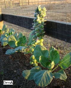 *The Brussels sprout stock in above photo was purchased at Trader Joe’s. The “squatty plants” are in my garden.