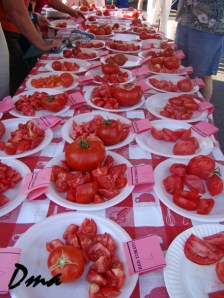 Tomatoes were divided into three categories, full size non-red, full size red, and cherry. Each entry was logged, tagged, categorized, and cut into bite-size pieces. Participants looked on with anticipation while three poker-faced judges tasted and scored each entry.