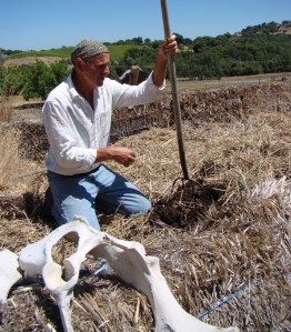After teaching more than twenty-five years, D’Agostini returned to his childhood home to care for his mother. Although she has passed, D’Agostini remains on the inherited property and home where he practices a blend of organic, permaculture, and Biodynamic techniques. According to D’Agostini, “My methods are guided by an inquisitive mind that sees interconnections between everything.” His farming systems include cow manure compost contained by straw bails (two high), compost teas made from yarrow, chamomile, dandelion, valerian, oak bark and nettles, cow pat (http://www.biodynamics.in/CPP.htm), and buried cow horns in producing preparation 500 and 501 (http://krishisewa.com/articles/2011/biodyn.html).
