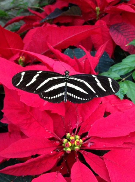 Visit The Conservatory of Flowers Special Exhibit in San Francisco and walk among hundreds of stunning butterflies fluttering among an intimate indoor cottage garden with beautiful poinsettias.