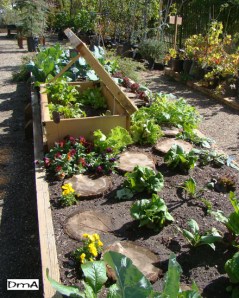 place a cold frame on top of the bed. Cold frames give plants a good start because the frame is bottomless and the roots have plenty of depth to grow before transplanting. Once the large items were in place, cedar steps were weaved throughout the bed. Then Stephanie and Salye launched a class to teach children how to plant winter vegetables.