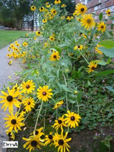 Beneath my office window, these wild sunflowers are as sunny as fresh-squeezed orange juice. They keep blooming as if they’re made of silk and don’t need watering. They were in a wildflower seed packet from a fan (thank you), and I have to say their spunk perked me up.